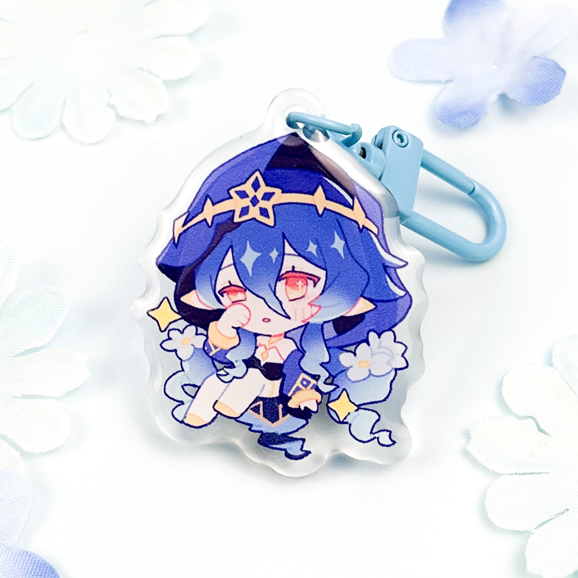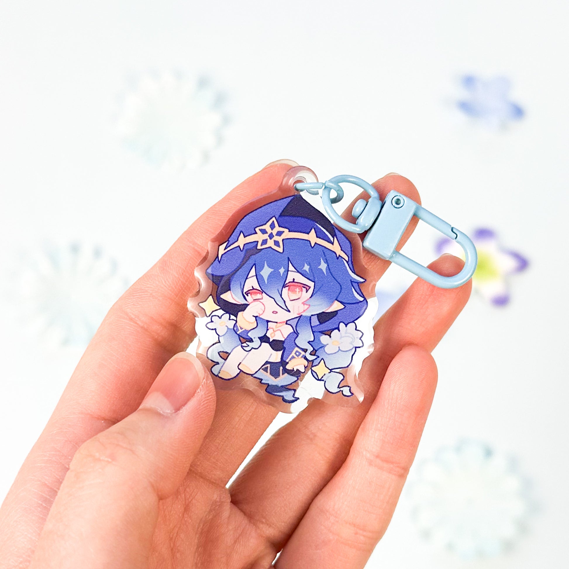 Keychain of Layla from Genshin Impact. Made with acrylic and finished with domed epoxy on one side. Great way to bring your favourite characters with you everywhere!