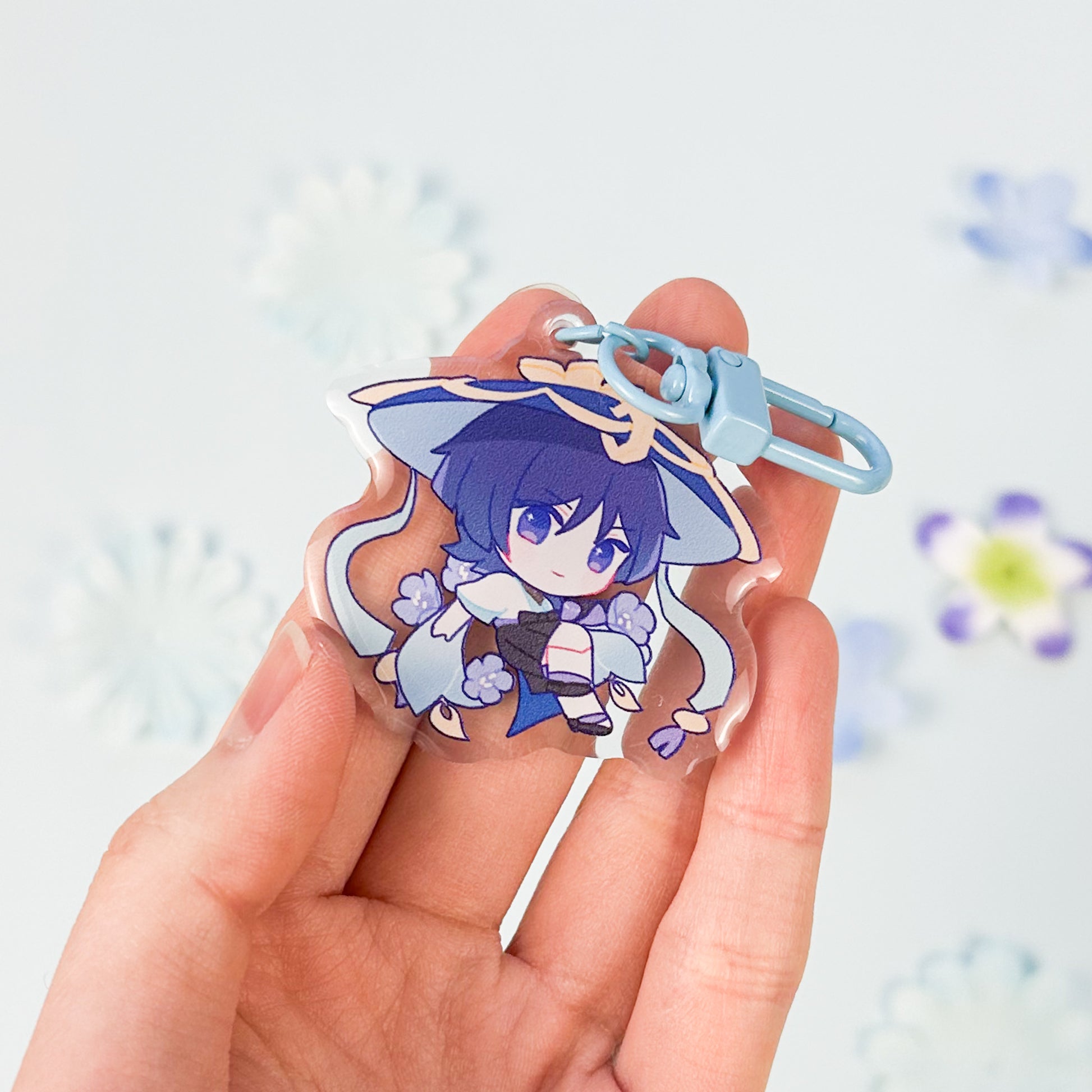 Keychain of Wanderer from Genshin Impact. Made with acrylic and finished with domed epoxy on one side. Great way to bring your favourite characters with you everywhere!